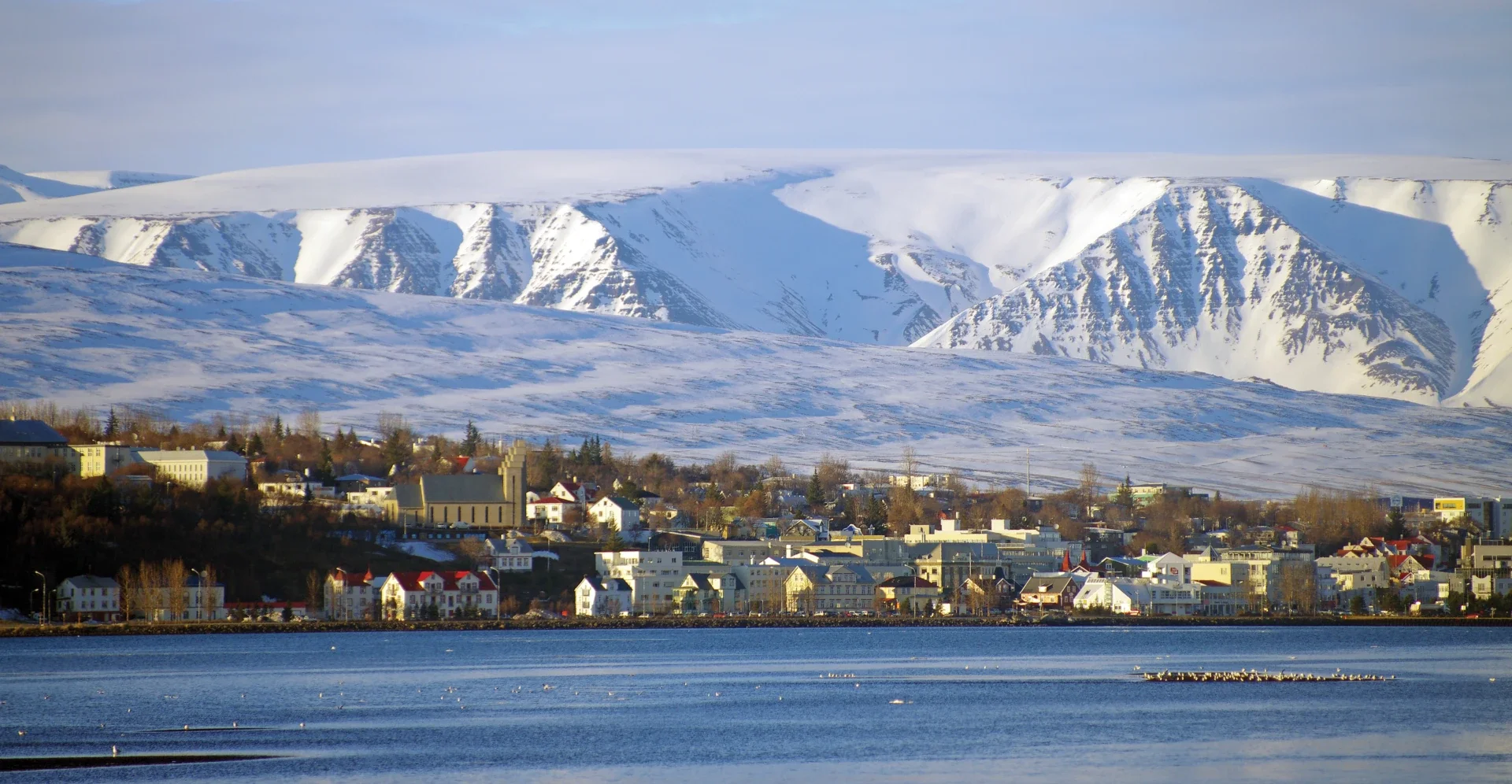 Akureyri is the country’s second largest settlement after Reykjavik, but with only around 20,000 residents it still feels like a friendly small town. Though it sits just 60 kilometres below the Arctic Circle, the climate is pleasantly mild and picturesque, with colourful homes set on green hills at the base of a volcanic mountain chain.