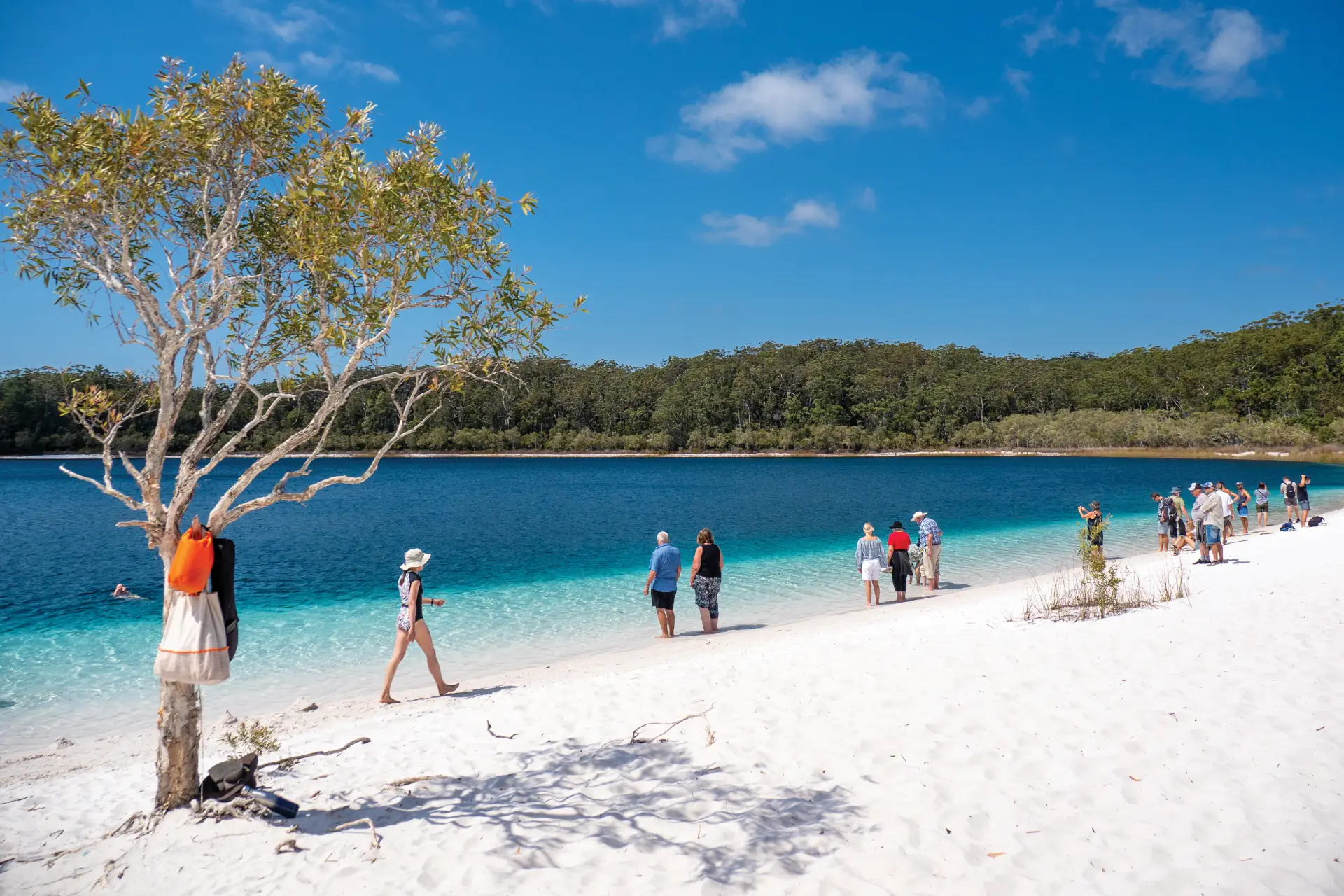 • Full day K'gari Explorer Day Tour including lunch, and stops at Lake McKenzie, Eli Creek, The Pinnacles and Five Mile Beach with retrun RailBus Coach tranfer from Maybourough West Railway Station to Hervey Bay